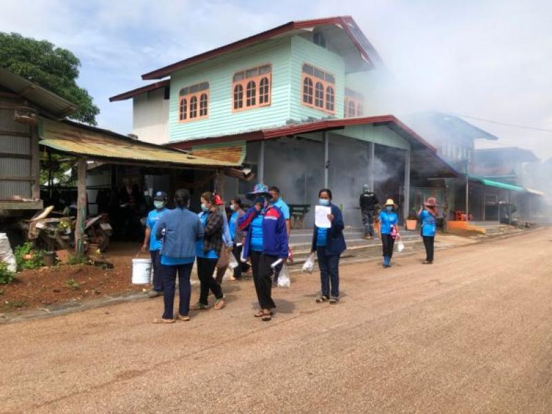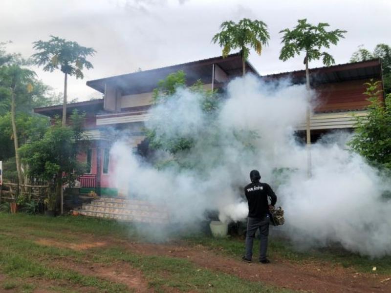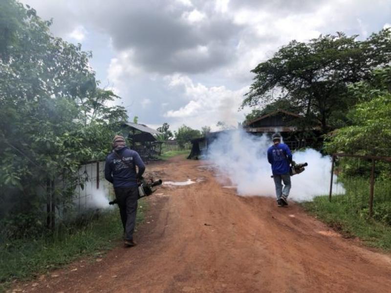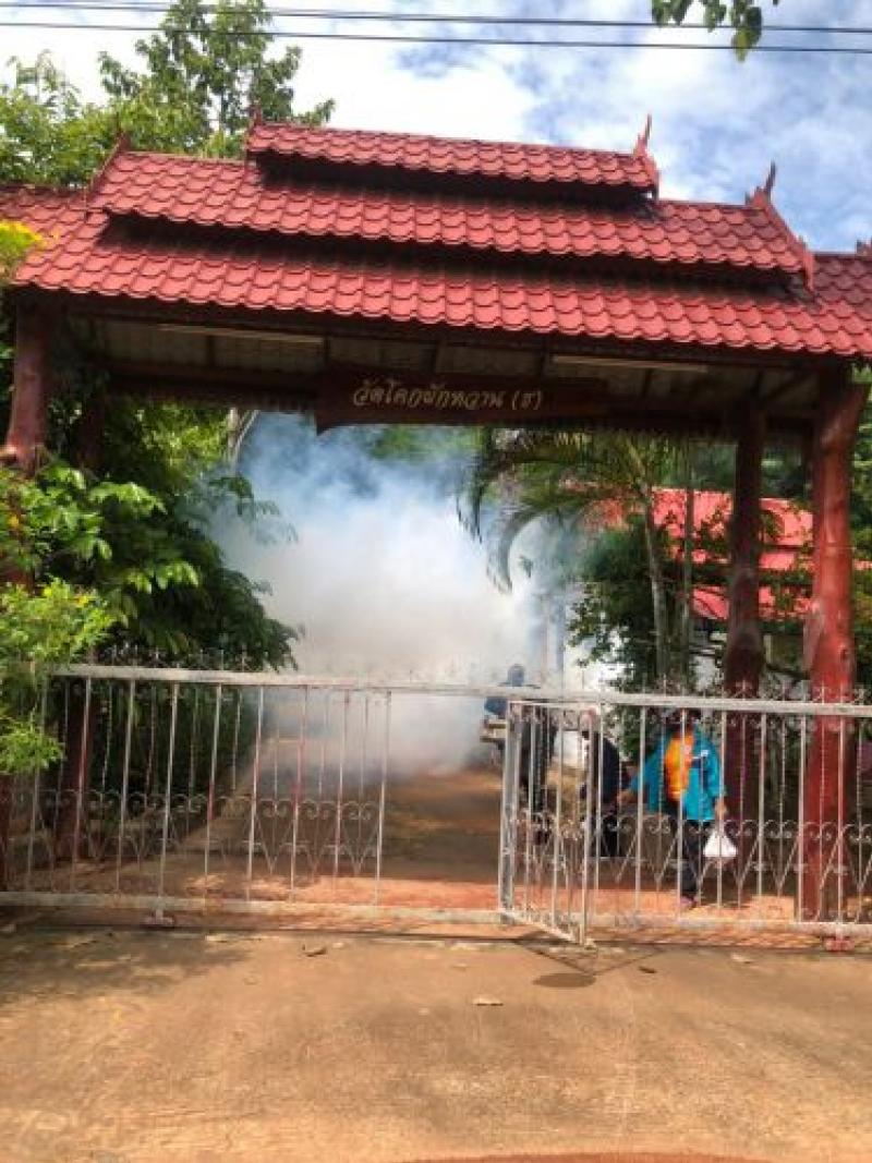 กิจกรรมพ่นหมอกควัน สำรวจแหล่งเพาะพันธุ์ยุงลาย หยอดทรายอะเบท ในพื้นที่ตำบลขัวก่าย
