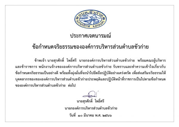 ข้อกำหนดจริยธรรมขององค์การบริหารส่วนตำบลขัวก่าย