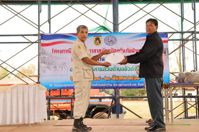 รายละเอียด : องค์การบริหารส่วนตำบลขัวก่าย ได้ดำเนินโครงการฝึกอบรมอาสาสมัครป้องกันฝ่ายพลเรือน (อปพร.) หลักสูตรทบทวน ประจำปีงบประมาณ 2567 เพื่อทบทวนและเตรียมความพร้อมให้กับอาสาสมัครป้องกันภัยฝ่ายพลเรือน (อปพร.) ในการป้องกันและบรรเทาสาธารณภัยที่อาจเกิดขึ้น ในพื้นที่รับผิดชอบและพื้นที่ใกล้เคียง ระหว่างวันที่ 18- 20 มีนาคม 2567 ณ องค์การบริหารส่วนตำบลขัวก่าย ในการนี้มีอาสาสมัครป้องกันฝ่ายพลเรือน (อปพร.) เข้ารับการฝึกอบรมหลักสูตรดังกล่าว จำนวน 77 ราย