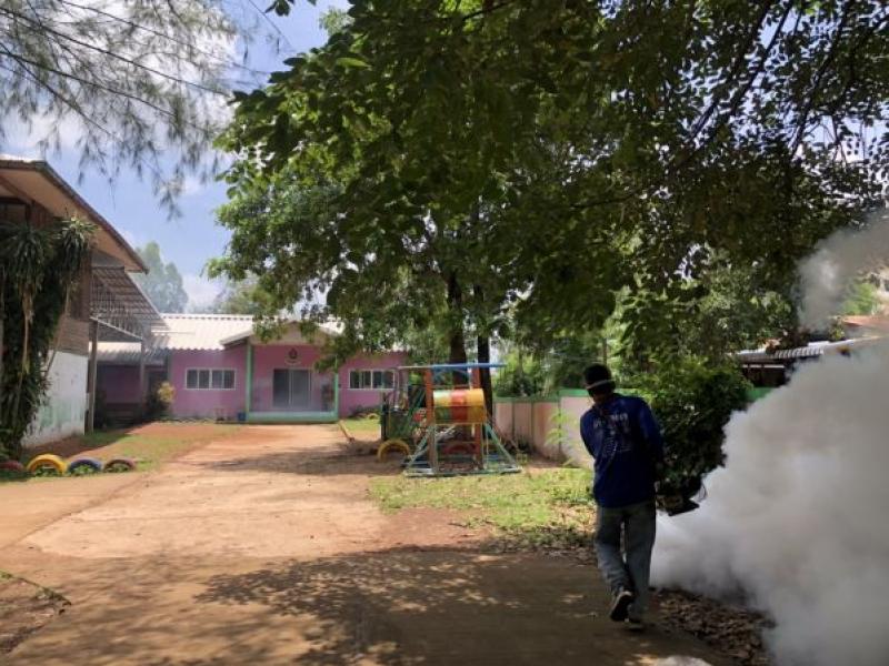 กิจกรรมพ่นหมอกควัน สำรวจแหล่งเพาะพันธุ์ยุงลาย หยอดทรายอะเบท ในพื้นที่ตำบลขัวก่าย